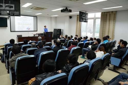 我院院長陳學(xué)東院士、浙江工業(yè)大學(xué)化機(jī)研究所所長高增梁教授、浙江金盾控股集團(tuán)有限公司總裁馬夏康,集團(tuán)首席專家薛勝雄副總師、徐鵬研究員,科研部部長朱建新及院相關(guān)專業(yè)人員80余人參加報告會,壓力容器技術(shù)部部長范志超主持報告會。