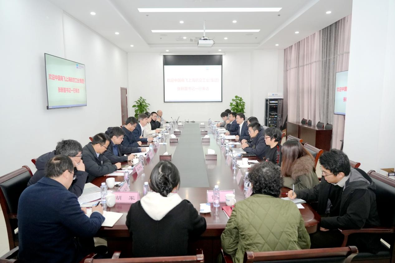3月5日,中國商飛上海航空工業(集團)有限公司黨委書記、董事長張新苗一行來院交流。我院黨委書記、董事長徐雙慶,總經理陳曉紅會見客人。